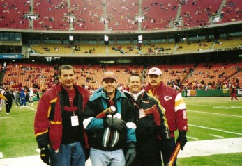 One of the greatest Thrills was to be on the field before the Chiefs Raiders game. Pictured above are David Miller, Scott Powell, Mark Miller, and Steve Davis. The Chiefs Beat the Raiders That day 27 to 24!